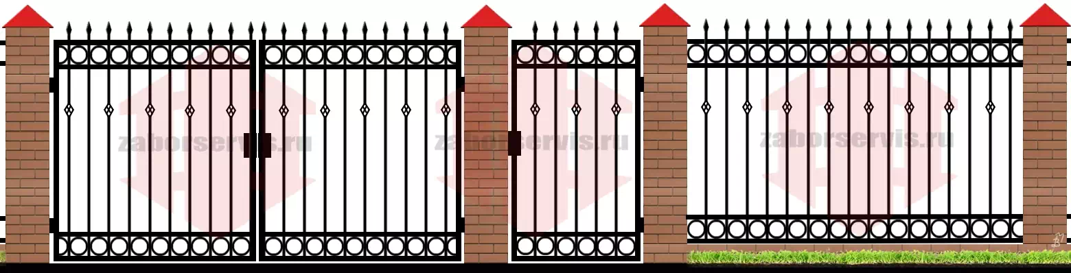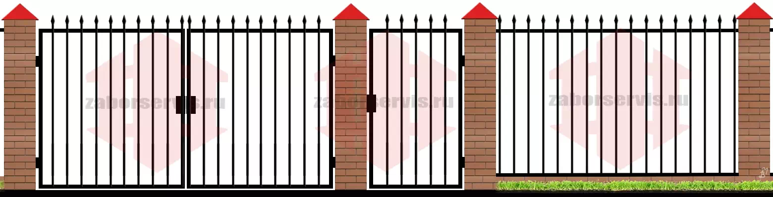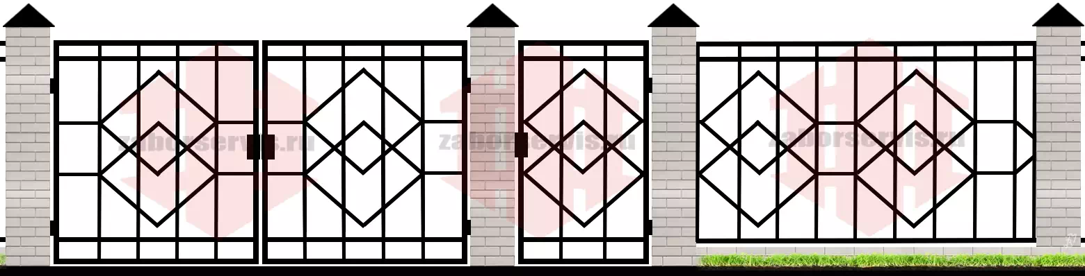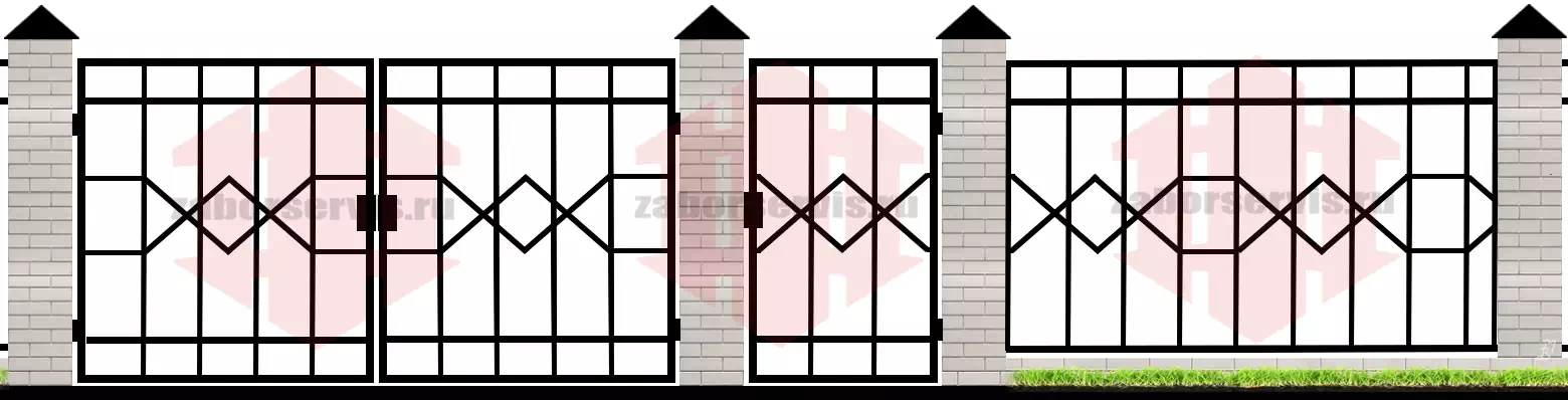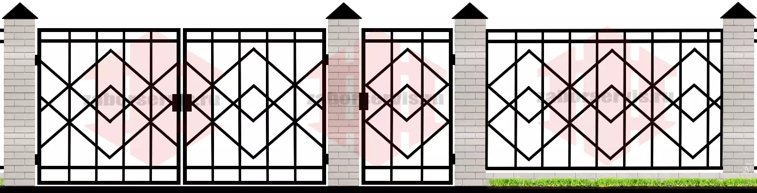 Забор из 3Д панелей ячейка 200х55 (на крашеных столбах 60x60)